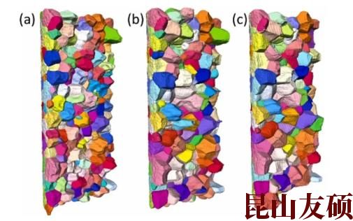 Pro技术,结合吸收衬度和衍射衬度,捕捉了Al-5%Cu合金在多次等温退火过程中晶粒结构的演变,在《Tomography of Materials and